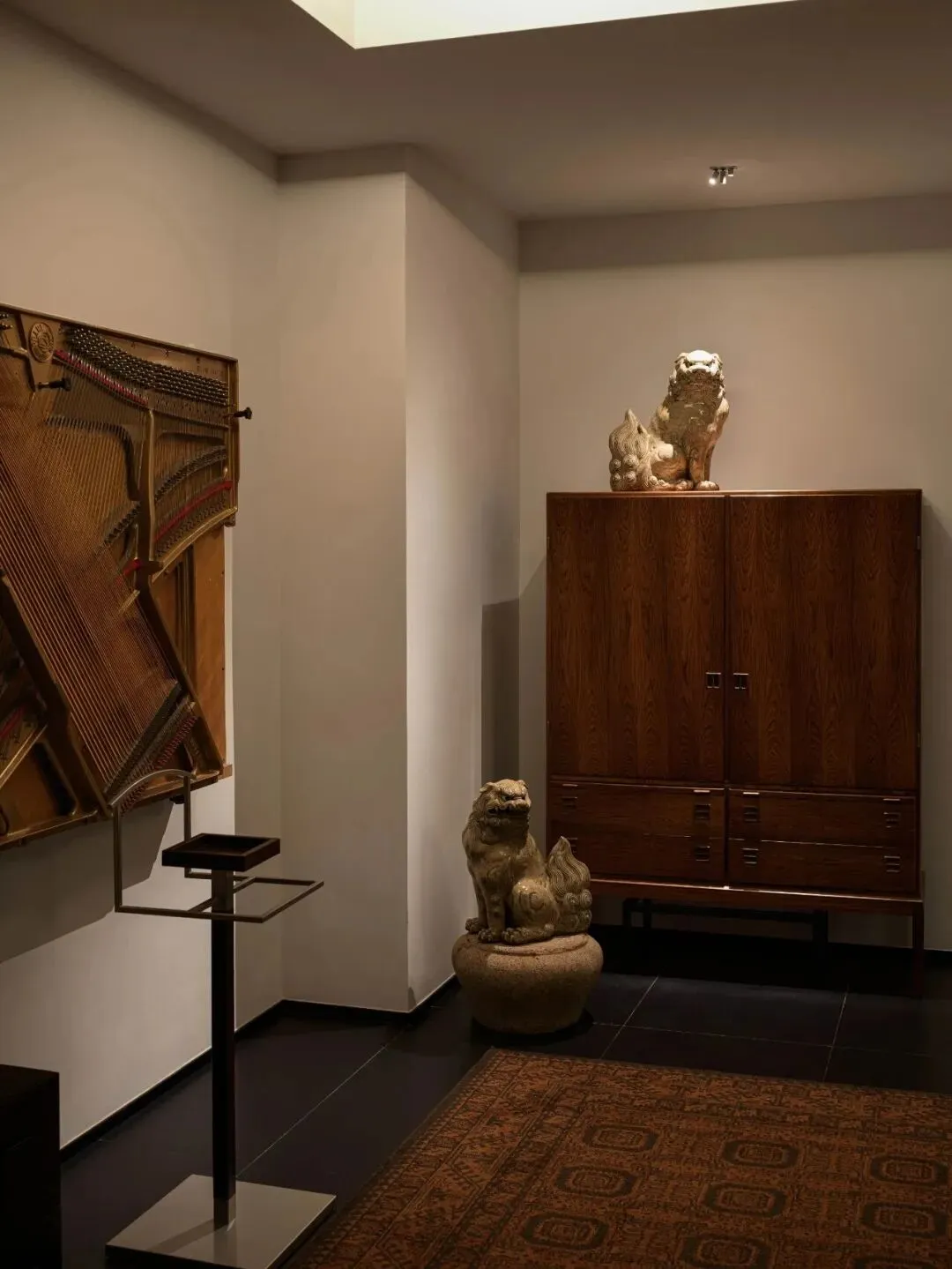 家具、雕塑、香炉、狮子、屏风、漆器……每件家具、每个装饰物都与空间融为一体,彼此呼应,形成独特的美学语言。