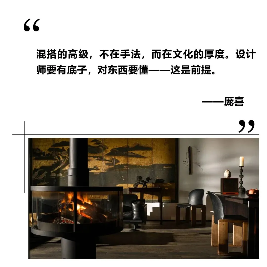 厐喜的设计不仅仅停留在形式和外观的层面,更多的是在空间的每一处细节中融入文化与哲学。他将中国传统文化中对细节的极致追求转化为现代生活中的可操作艺术。