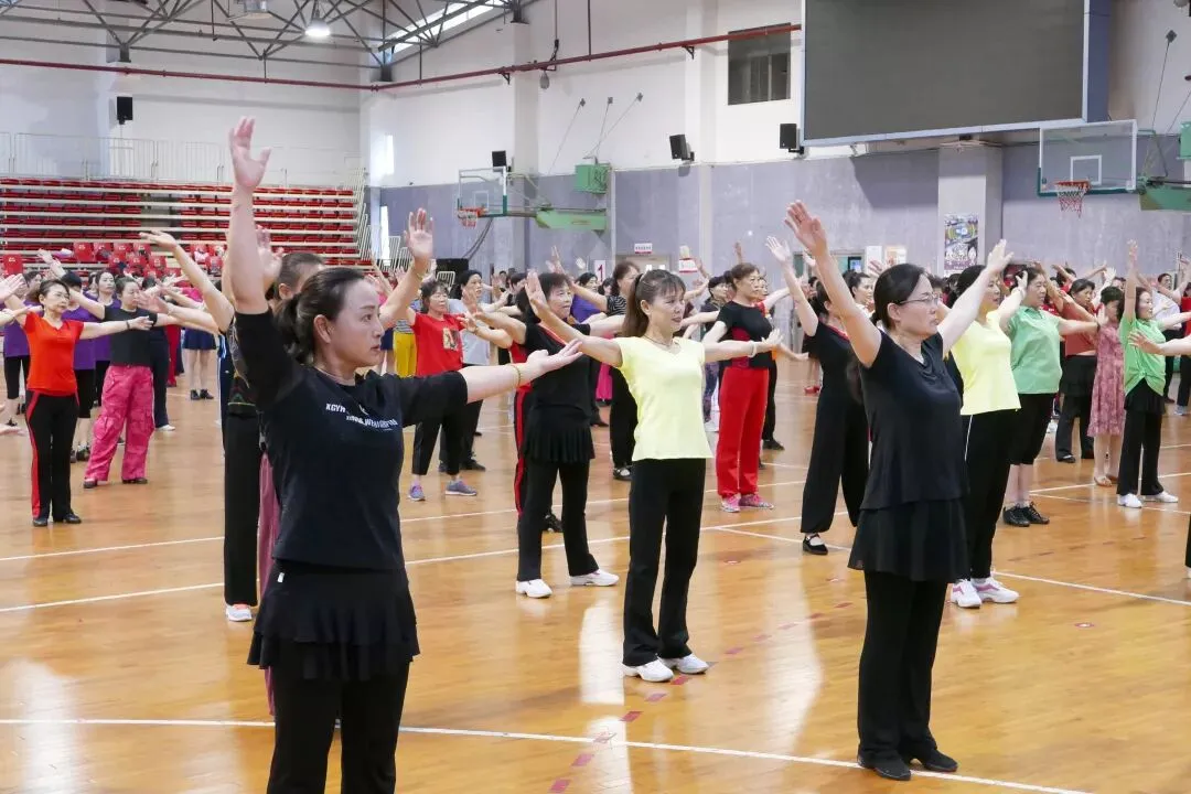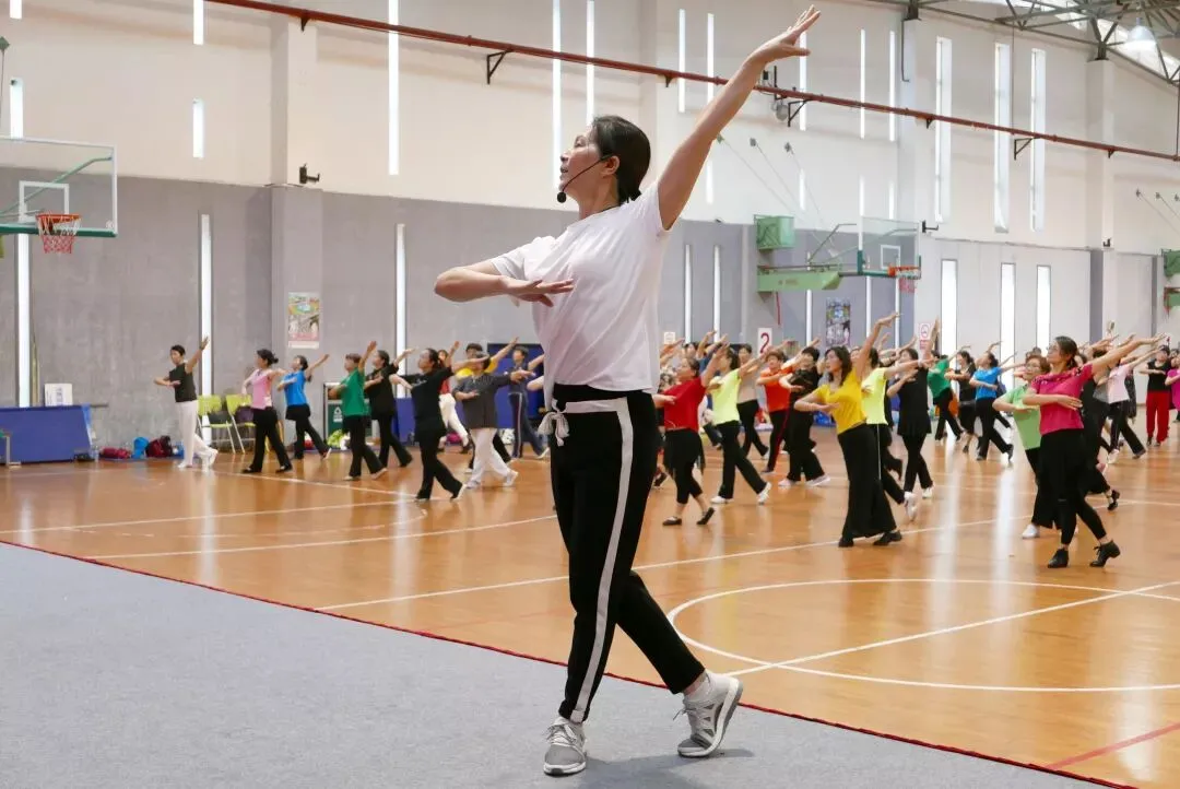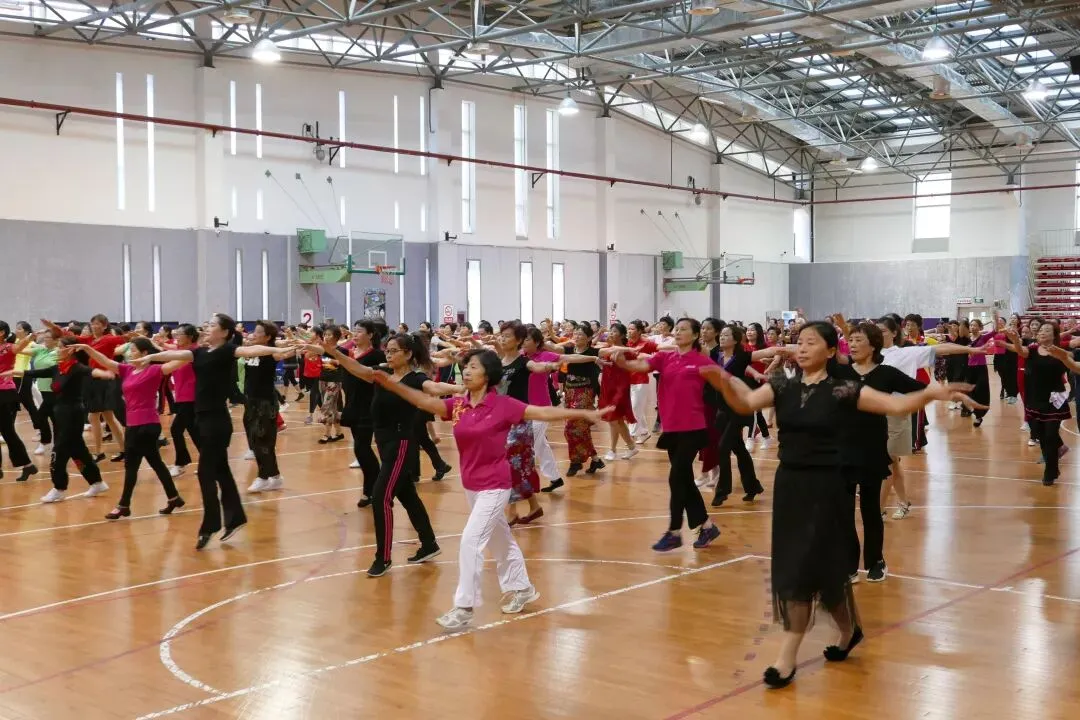 为迎接祖国70华诞,贯彻落实省委新时代文明实践中心建设试点工作联席会议精神,推进广场健身舞运动广泛、深入、健康发展。今天(6月12日),“庆新中国70华诞,共舞祖国好”苏州市社会体育指导员广场舞技能培训在市民健身中心篮球馆正式开班,共有来自苏州各地区的近200名一线社会体育指导员参加培训。