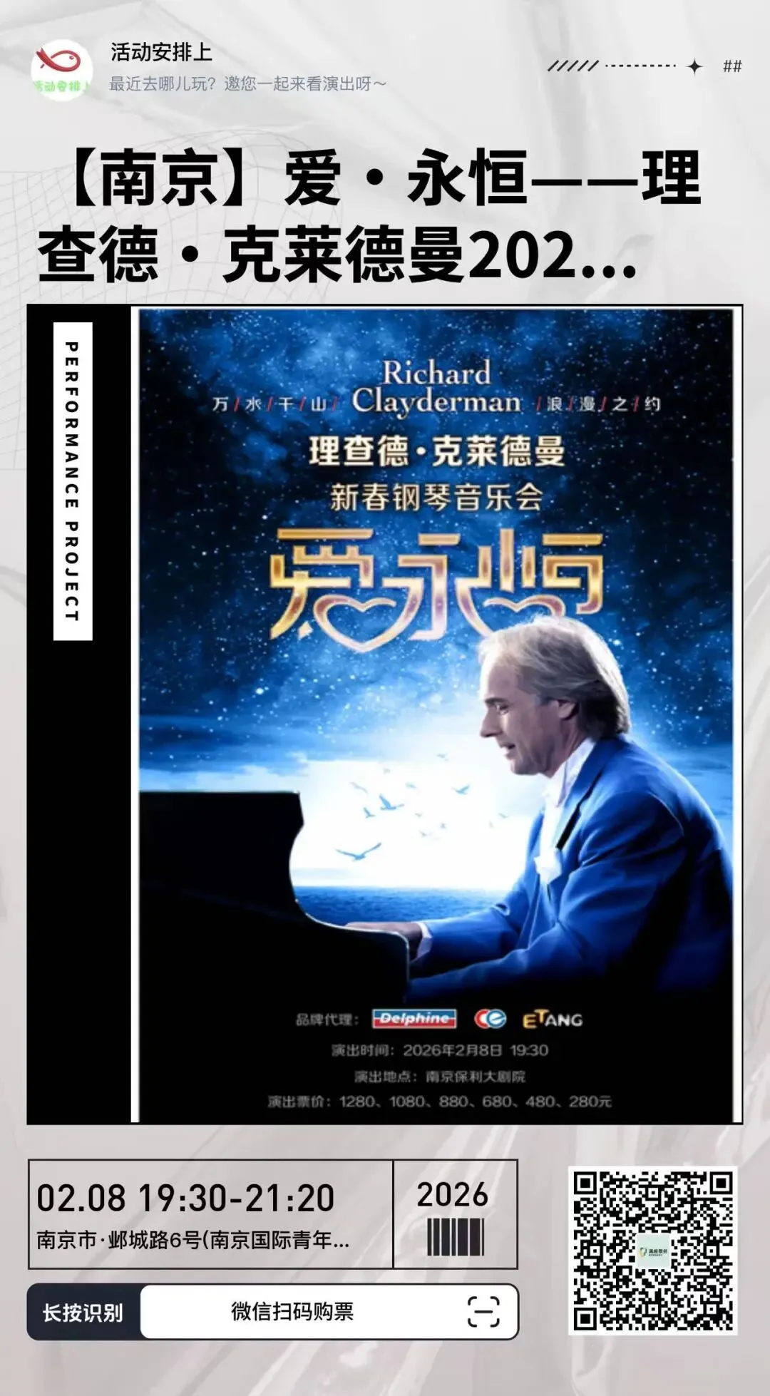 >【南京2026.02.08】爱·永恒——理查德·克莱德曼2026新春钢琴音乐会站
