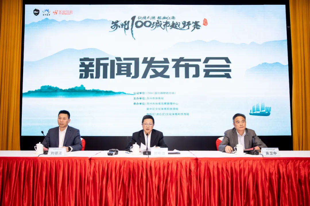 10月24日上午,2023苏州100城市越野赛新闻发布会在苏州市会议中心召开,苏州市体育局局长阙明清、副局长吴卫中等领导出席,发布了比赛时间、赛事规模、路线、主视觉、LOGO、奖牌、冠军戒指以及服装设计等信息。