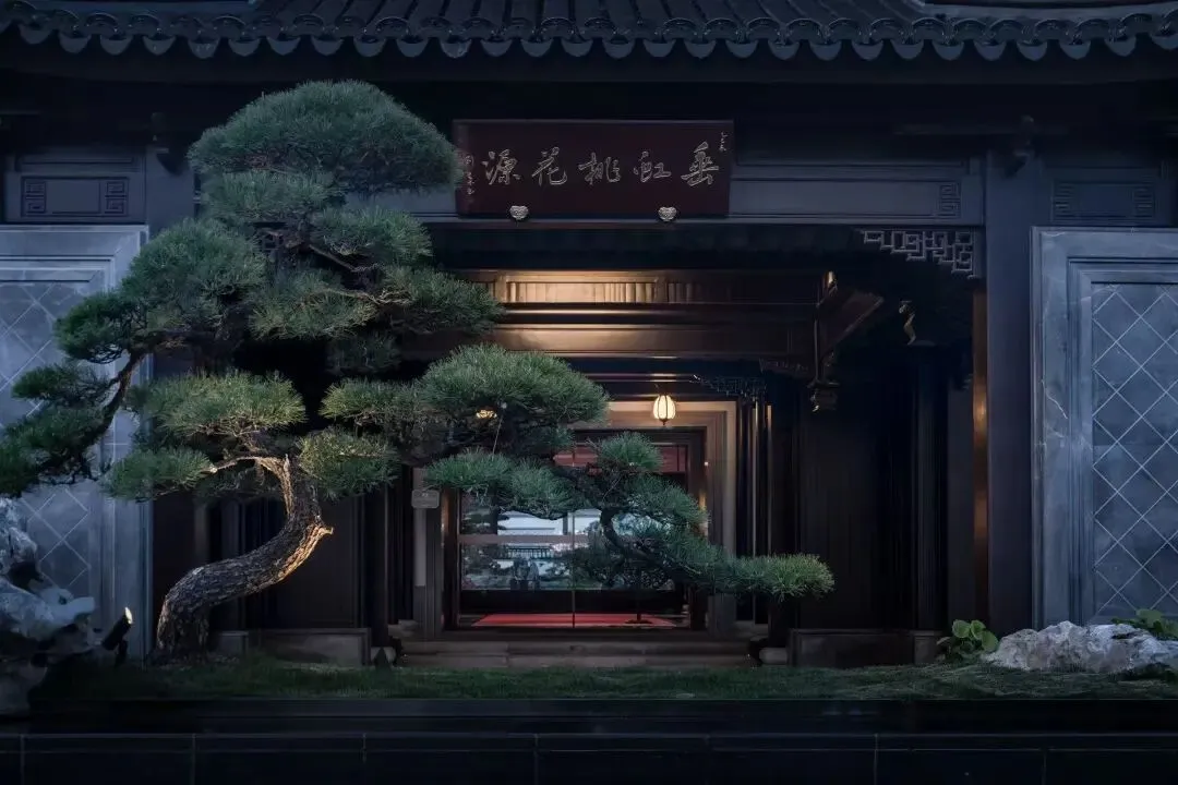 主入口设计,重檐歇山+门堂前庭,中式韵味直接拉满。