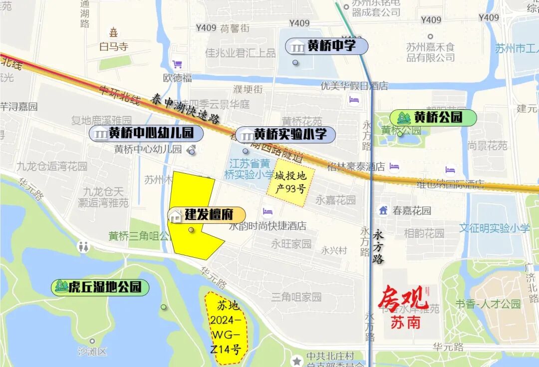 项目落在相城区黄桥街道华元路南,紧挨着虎丘湿地公园这个苏州“生态绿肺”,推窗就是一线湿地风景,日常呼吸的空气都带着草木清香,居住舒适度直接拉满。