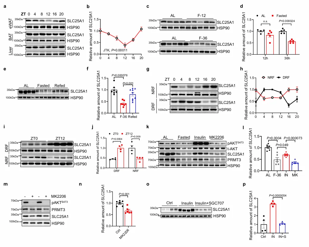 更关键的是,PRMT3会直接修饰一个名为SLC25A1的线粒体柠檬酸转运蛋白。这个蛋白就像脂肪合成的“加速器”——它把线粒体内的柠檬酸运到细胞质中,用于制造新的脂肪酸。而PRMT3通过甲基化修饰,稳定了SLC25A1,使其在进食后大量积累,促进脂肪储存。
