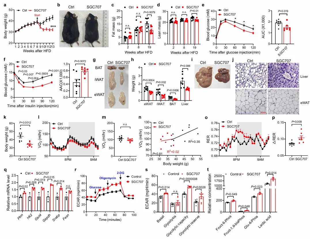 研究人员使用一种名为SGC707的PRMT3抑制剂处理高脂饮食诱导的肥胖小鼠。结果令人惊喜: