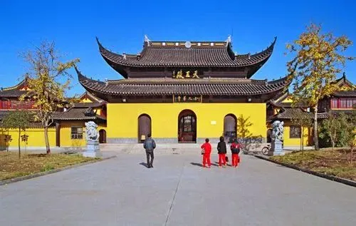 小九华寺坐落在风景秀丽的莺脰湖畔,四周环水,只有一座伟岸挺拔的安德桥相连。
