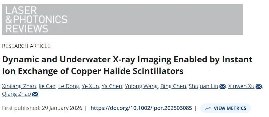 南京邮电大学,Laser & Photonics Reviews,铜基卤化物闪烁体瞬时离子交换实现动态与水下X射线成像