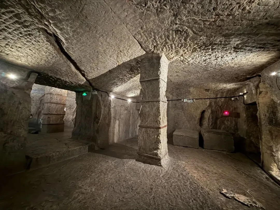 双向平行的两条甬道,极长。地下的房间和现在的房间其实是一样的,有顶有梁,房间布局大小,风水等等,所以活着是什么样,死了就是什么样,有井、有天地之水、有排水管道、有顶梁柱,这是毛坯,也有精装的。