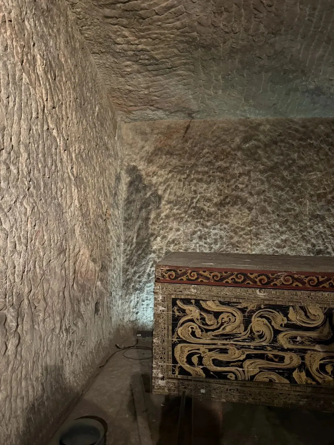 朝代过去了,门上锁了,没氧气了,所以来了很多后人想要打开,在巨石上,穿个牛鼻孔,把堵住甬道的石头这样方便拿出。基本之前都有人来过,甚至前人来过留下的东西也作为了文物,比如说过去的煤油灯,灯芯留在了墓室外。