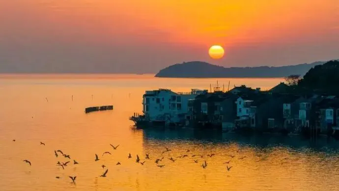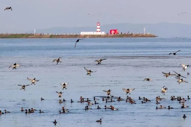 距冲山岛不远的渔港村码头,是体验"渔舟唱晚"与"鸥翔浅底"同框画面的隐秘角落。退捕渔民的渔船静静停泊,船舷上停驻的红嘴鸥与斑驳的木船、远处的渔网构成质朴的生活画卷。此处游客稀少,更适合静静观察红嘴鸥与本地野鸭、白鹭共处的生态景象,聆听它们此起彼伏的鸣叫声,感受生命与自然的和谐共鸣。