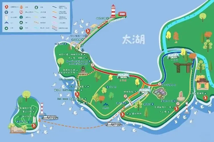 导航设置"苏州市吴中区光福镇冲山村",沿环太湖公路驱车,一路湖光山色相伴。岛内设有多处停车场,但黄金季节的周末车位紧张,建议九点前抵达,或选择午后错峰出行。