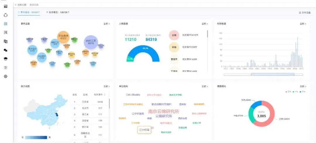 通过闻道知识智能管理平台的数据挖掘模块,我们对云锦相关档案进行了系统性处理,取得了以下成果: