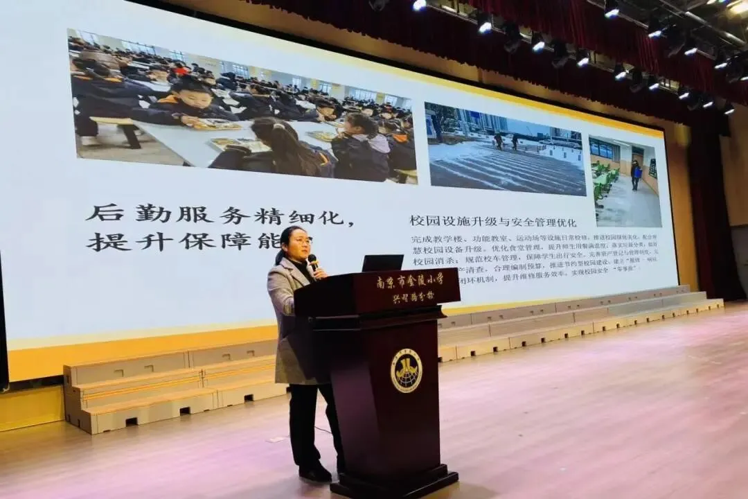 南京市金陵小学兴智路分校执行校长林卫云首先代表学校向长期以来支持学校发展的家长们表示诚挚感谢,并围绕本学期学校核心工作作全面汇报。林校指出,学校始终以立德树人为根本任务,聚焦“全面提升教育教学质量、构建平安和谐校园”核心目标,在德育建设、教学教研、安全保障、后勤服务等方面深耕细作、成效显著。
