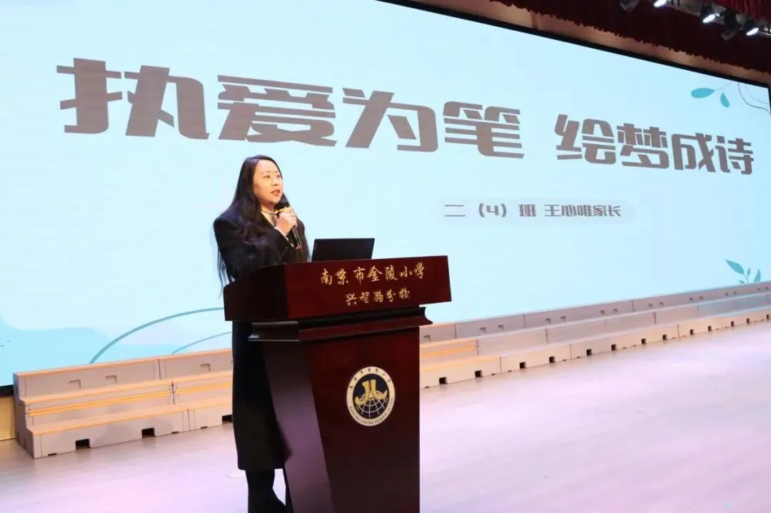 一(2)班赵诗涵同学的妈妈在发言中,首先代表全体家长向金陵小学兴智路分校的老师们表示衷心感谢,感谢老师们用高尚品格和敬业精神潜移默化影响孩子,也感谢学校提供优质学习环境。