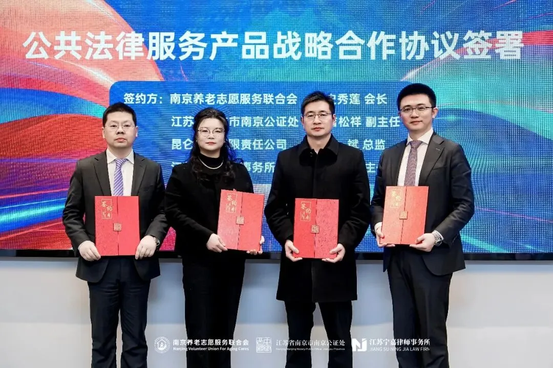 近日,由江苏省南京市南京公证处、南京养老志愿服务联合会以及江苏宁嘉律师事务所联合主办的“跨越时间与风险的守护”公共法律服务创新产品发布会暨“银龄驿站”公益项目启动仪式成功举行。