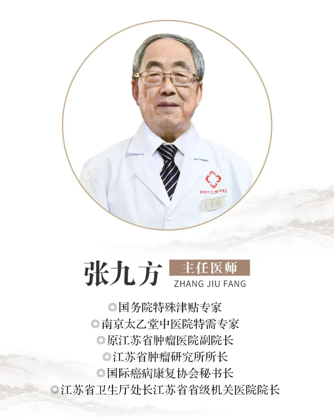 享受国务院特殊津贴,毕业于南京医科大学医疗系,致力肿瘤临床和科研40余年,在消除肿瘤并发症、控制肿瘤细胞、调整治疗、提高病人抗病能力等肿瘤治疗领域取得了一定的成绩,切实有效地延长了病人的生命,减轻了病人的痛苦。在多年的行医生涯中,张九方主任始终在不断探索中国医学博大精深的内涵和文化底蕴,始终以古代医学家的高尚医德鞭策激励自己,寻求更高的医学境界,造福更多的肿瘤患者。