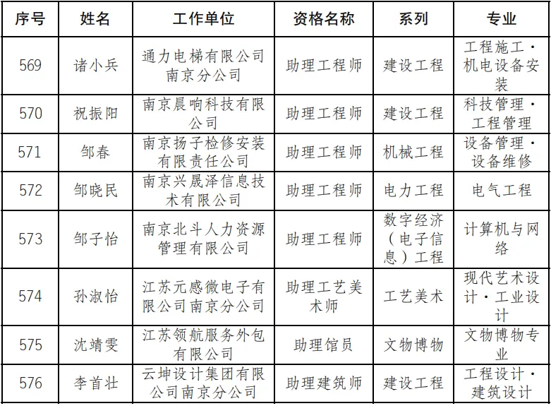 根据《南京市人力资源和社会保障局关于做好我市专业技术人才职称初定工作的通知》(宁人社〔2024〕133 号)文件精神,经初定,确认蔡皓宇等576名同志具备初级专业技术资格。