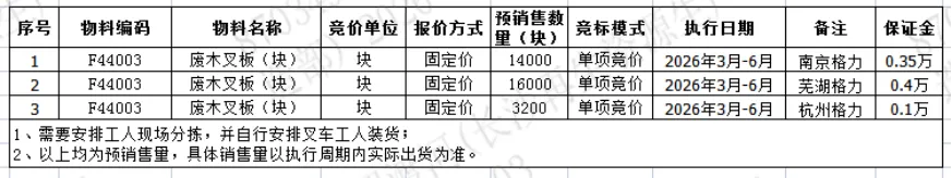 拟对以下物料价格进行竞价,下表中出售量仅供参考,最终数据以我司出售时过磅数量为准。竞价回收后,回收商不得以出售量与预估量不符提出任何异议。