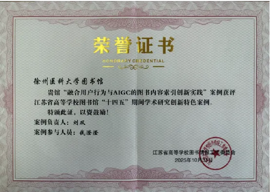 《融合用户行为与AIGC的图书内容索引创新实践》案例,入选江苏省高等学校图书馆“十四五”期间学术研究创新特色案例