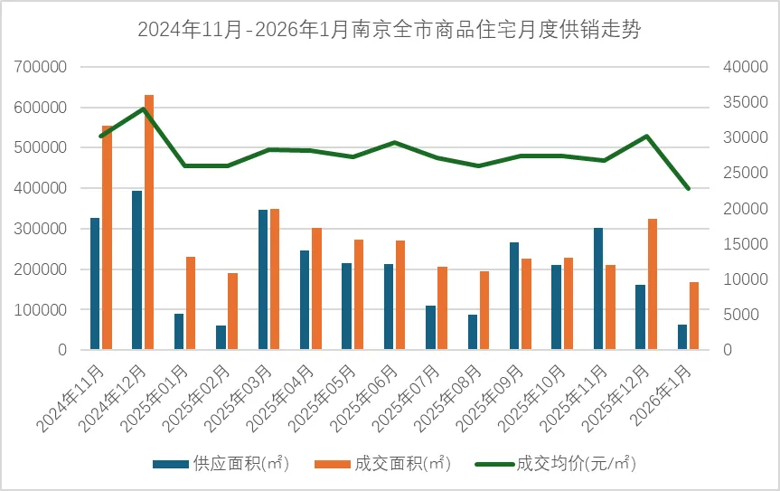 1月全市商品住宅供应6.34万方,同比下滑29%,环比下滑60.79%;成交16.73万方,同比下滑27.51%,环比下滑46.55%。成交均价22820元/㎡,同比下滑12.05%,环比下滑24.32%。