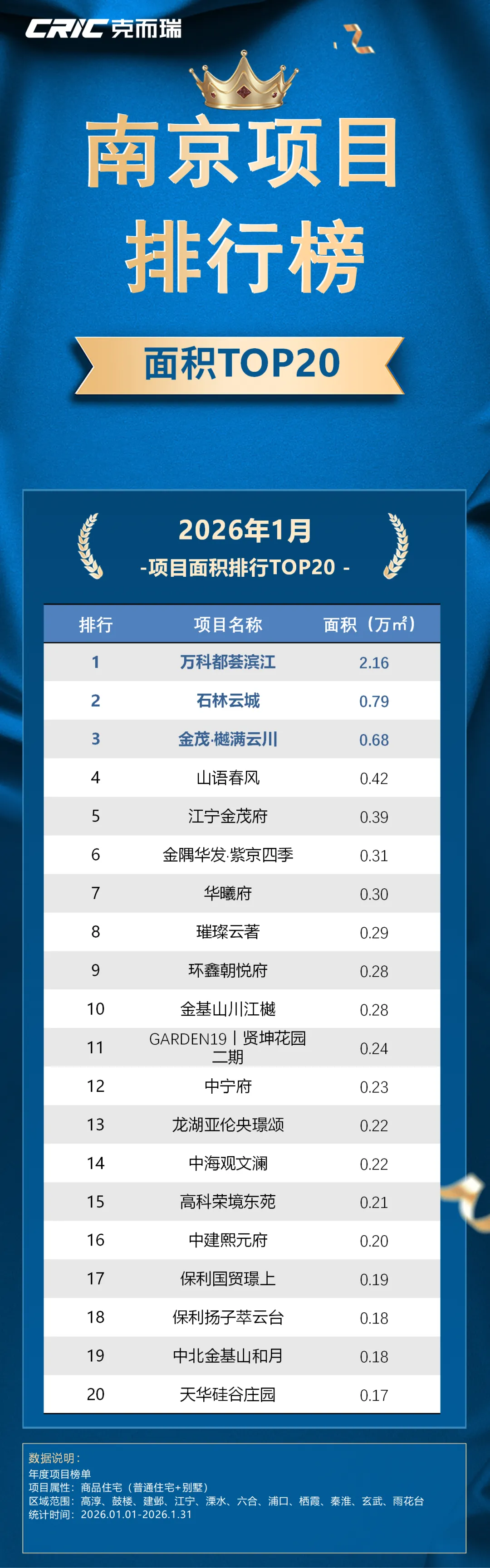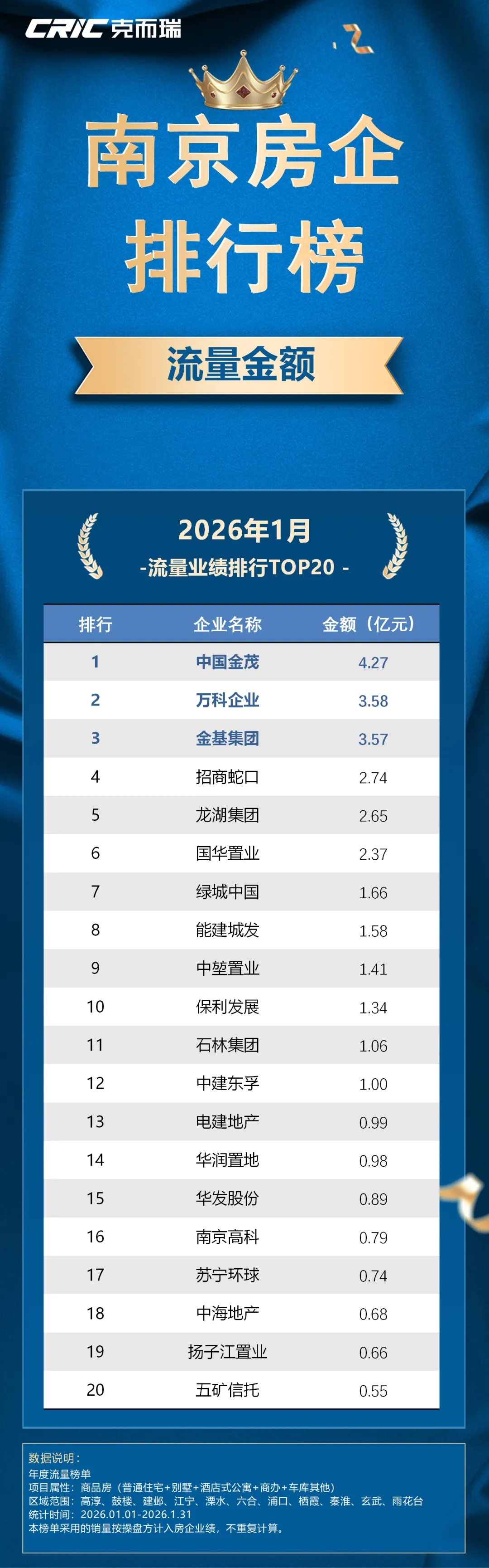 本次克而瑞南京发布《2026年1月房企销售排行榜TOP20》,用数据来呈现房企的业绩表现。