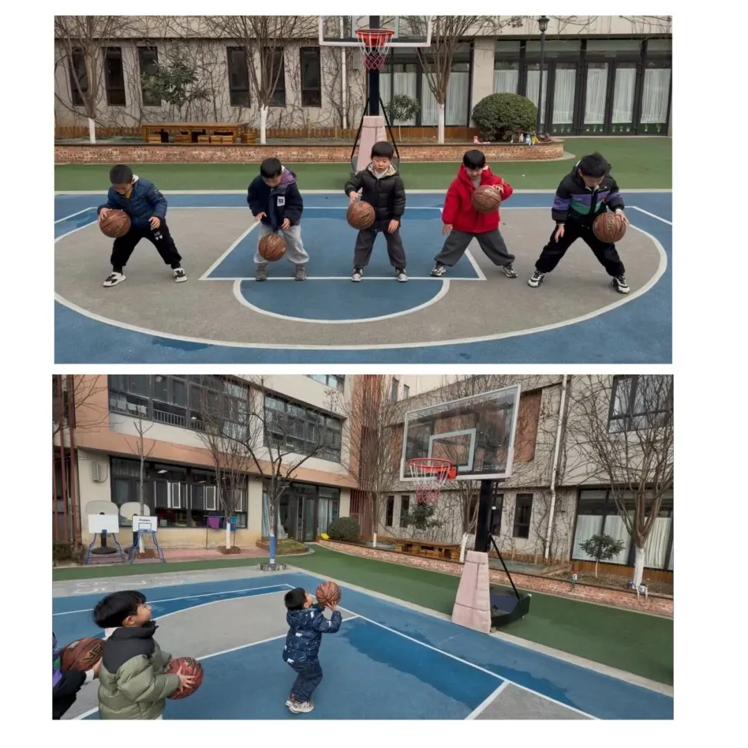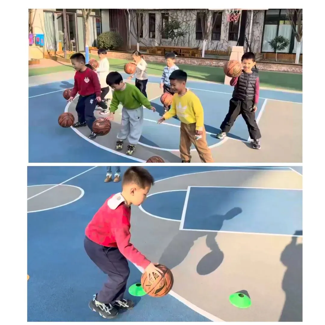 为了在比赛中取得优异的成绩,球队展开了紧张而有序的日常集训。集训的教练由南京临界篮球俱乐部专业篮球教练朱教练和我园的徐老师共同担任,为期10天的集训拉开了帷幕。教练根据孩子们的年龄特点和技术水平,制定了科学合理的训练计划。从基础运球的节奏感、传球的准确性,到团队战术的演练,如挡拆配合、快攻战术等,孩子们在高密度的训练中不断成长。