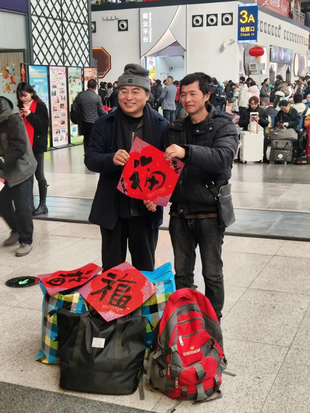 “手写的‘福’,才真有年味!”收到福字的旅客笑容洋溢。红彤彤的“福”字不仅点亮了行囊,更串联起旅途中的温暖瞬间,让春运归途浸润人文关怀。