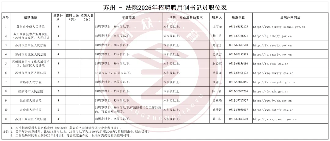 各职位开考比例1∶3。报名结束后,有效报名人数与招聘人数之比小于开考比例的职位,由省法院按照规定程序核减聘用计划,直至取消该职位。报考被取消职位并完成缴费的人员,可在相关网站重新补报其他符合条件的职位,补报名时间为2026年2月13日9∶00至16∶00。