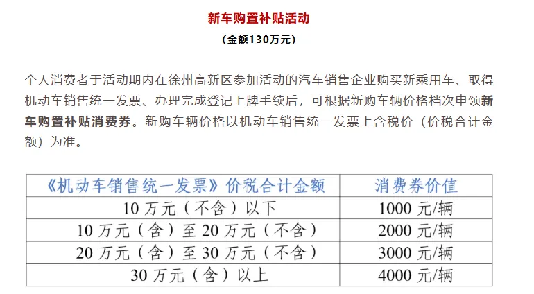 铜山区投入20万元发放消费券,鼓励商家推出配套优惠措施;高新区聚焦汽车消费,投入150万元用于购车补贴。