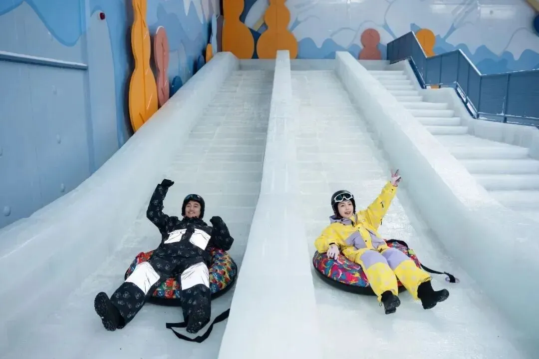 配备冰滑梯、雪地转盘等互动设施