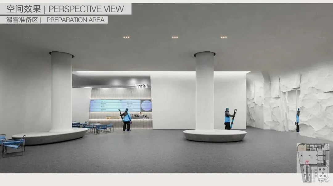 游客可俯瞰滑雪场景观,增强空间体验层次