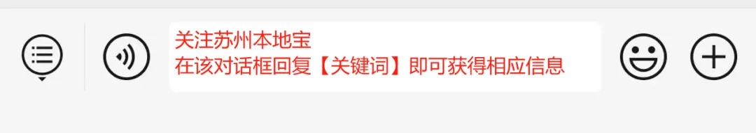 在苏州本地宝公众号聊天框输入以下关键词,可获取相关内容: