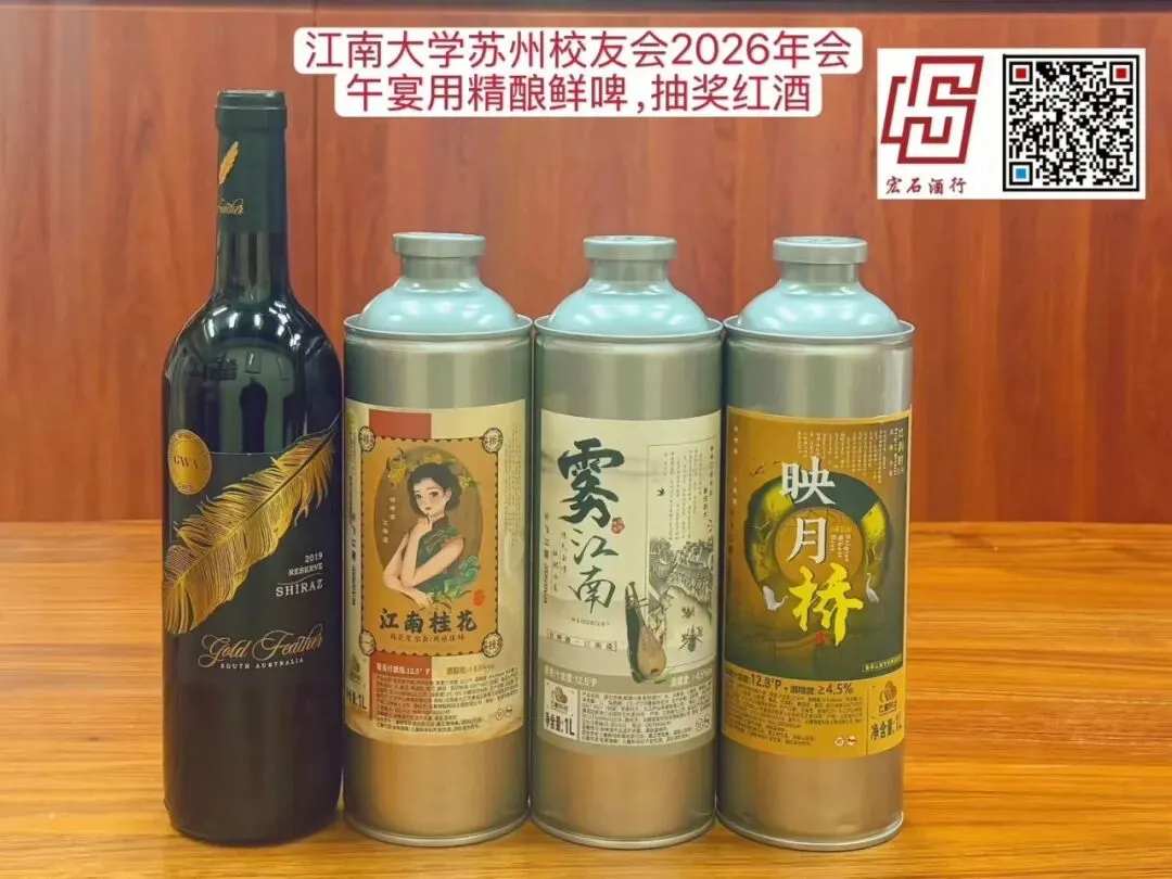 岁启新章,情暖苏城。江南大学苏州校友会2026新春联谊会温情启幕,一众校友欢聚一堂,共叙同窗情谊,共话新年新程。宏石酒行倾情助力本次盛会,为联谊会午宴赞助精酿鲜啤18罐,更备12瓶优质澳洲红酒作为现场抽奖好礼,以醇香佳酿为校友相聚添彩,让新春欢聚更具滋味。