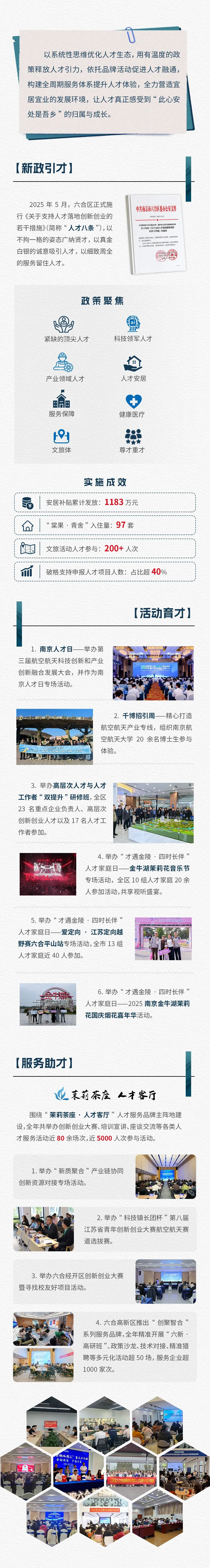 岁序更替,华章日新。回首2025,我们躬身耕耘,奋力书写人才“引育留用”答卷。这一年,我们坚定不移,深入学习贯彻习近平总书记关于做好新时代人才工作的重要思想,聚力打造高水平吸引集聚人才平台。这一年,我们向新而行,推动获批全省首家特色产业人才集聚区(信息通信),加快建设国际人才创新港,着力打造人才来苏“第一站”。这一年,我们暖心相伴,聚焦人才关心关切,持续强化服务配套,让人才在南京安居乐业、安心逐梦。近日,“南京人才发布”微信公众号推出《2025南京人才工作回眸》专栏,让我们一同回望2025年南京各区人才工作的坚实足迹,接续奋斗,蓄力前行!