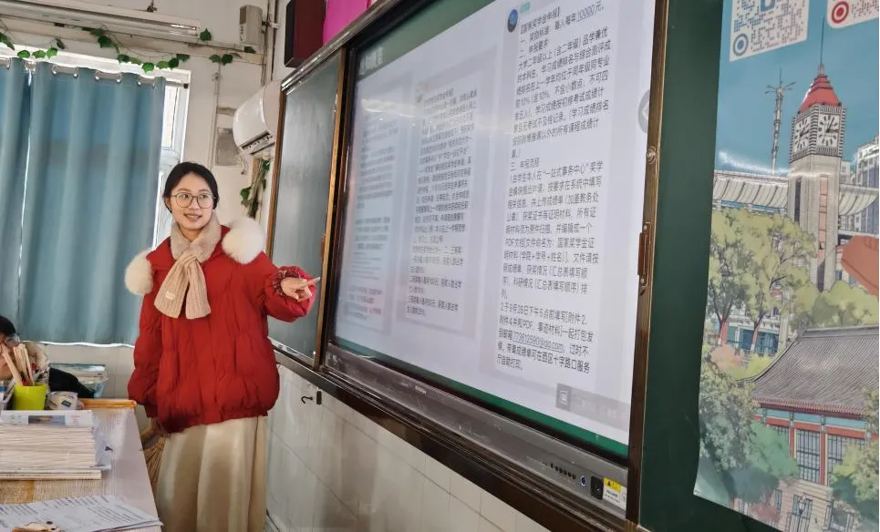 在高三(12)班,团队成员分别从学校简介、学科实力、学校生活、资助政策、报考指南、答疑总结等方面展开了宣讲。