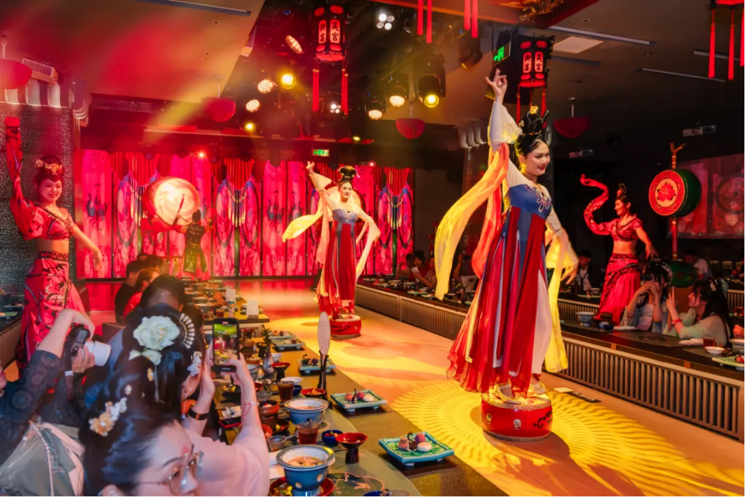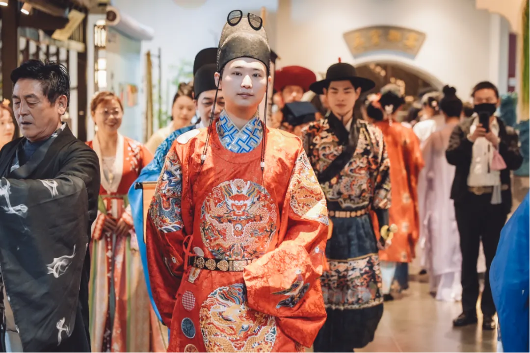 华灯初上,宾客如云。与会嘉宾身着华服,步入精心布置的古韵街市。古风酒铺、射箭雅戏、国学展示……仿佛一秒踏入《姑苏繁华图》。在欢声笑语与穿梭的人影中,彼此的情谊在古典雅趣中悄然升温。