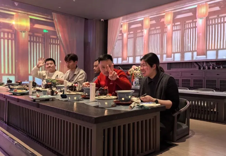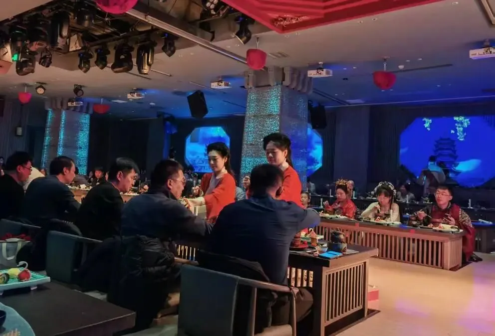 移步主厅,一场融合传统与现代的视听盛宴徐徐展开。昆曲水袖翩跹,评弹吴侬软语,与现代歌舞交织,演绎出苏州纳鼎继往开来的精神气韵。伴随着精彩演出,一道道精致苏式美馔依次呈上,觥筹交错间,宾主尽欢。