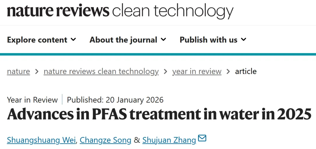文献信息:Shuangshuang Wei, Changze Song & Shujuan Zhang. Advances in PFAS treatment in water in 2025. Nat. Rev. Clean Technol. 2, 15–16 (2026). https://doi.org/10.1038/s44359-025-00126-1
