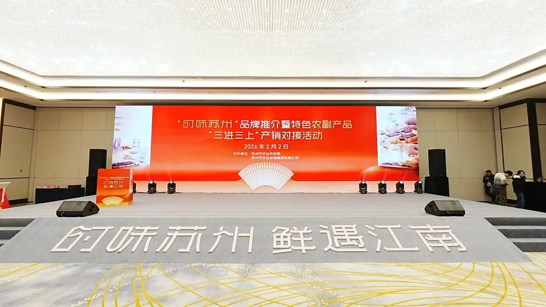 2月2日,由苏州市农业农村局、苏州市农业发展集团联合主办的“时味苏州”品牌推介暨特色农副产品“三进三上”产销对接活动成功举办。本次活动旨在进一步打响“时味苏州”农产品主品牌,推动本地特色农副产品产销衔接,为乡村振兴注入新活力。