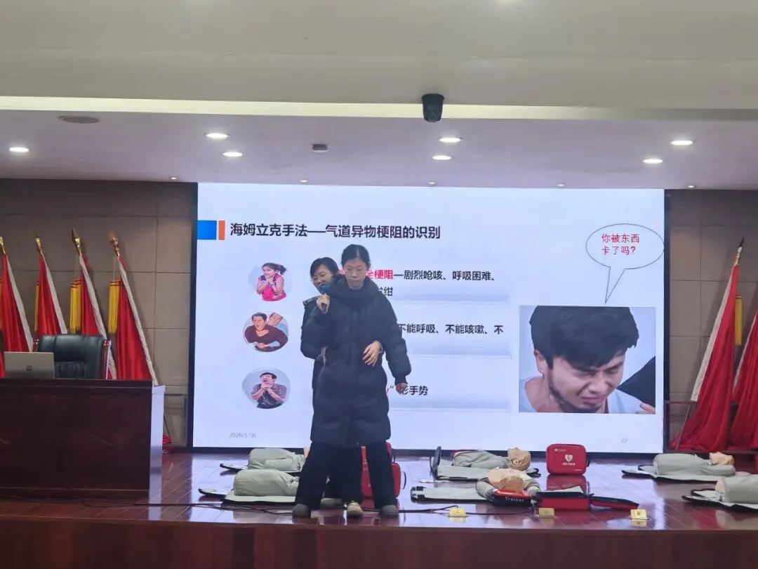 在胸外按压教学中,明确按压位置、深度、频率等核心标准;讲解AED使用时,拆解开机、贴电极片、分析心律、电击除颤等全流程步骤;演示海姆立克急救法时,针对不同人群的施救手法逐一示范;介绍止血方法时,结合不同出血部位讲解按压、包扎的实操技巧,让参训人员清晰掌握每一项急救技能的操作要领。