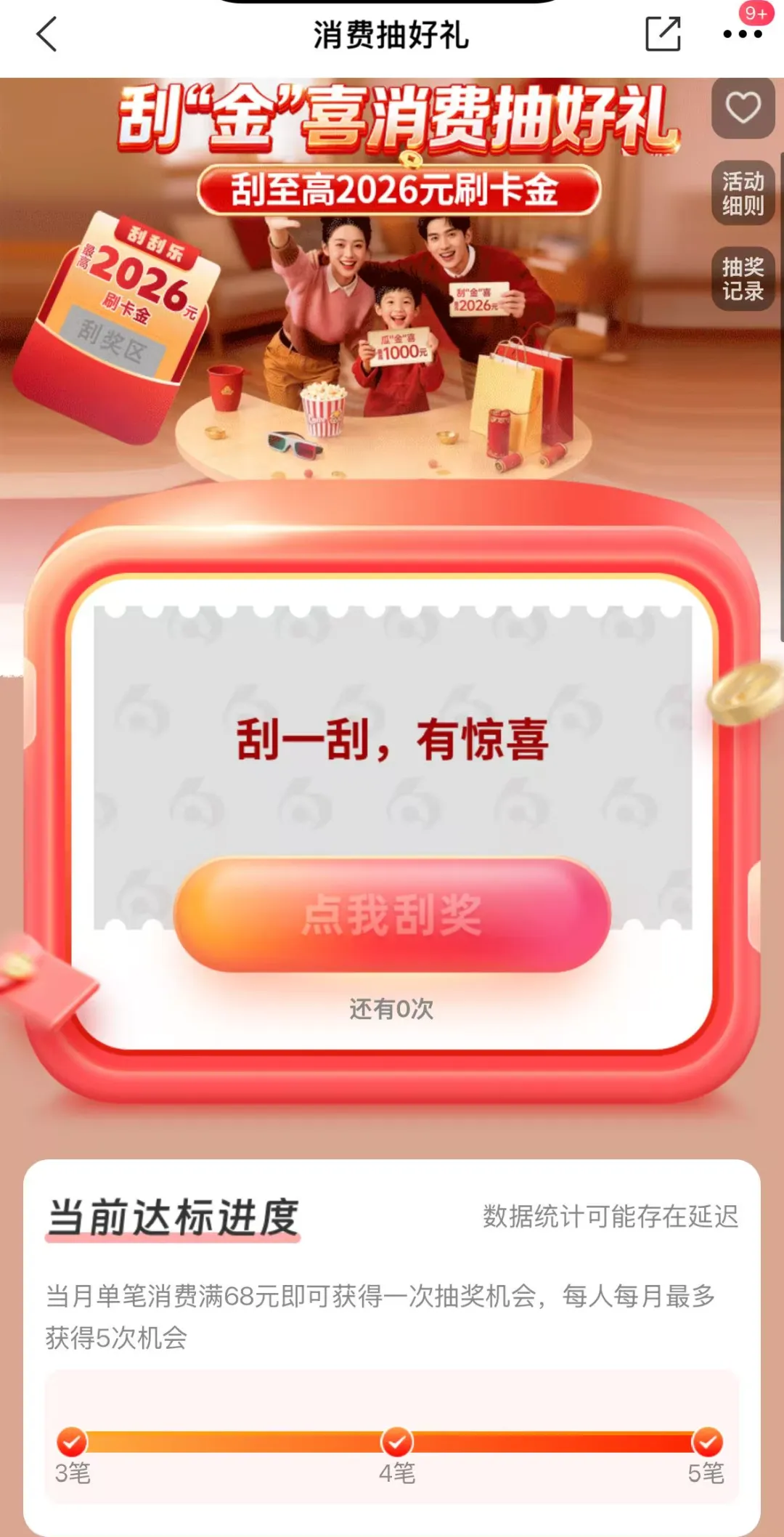 路径:买单吧APP-我的-热门活动-消费抽好礼