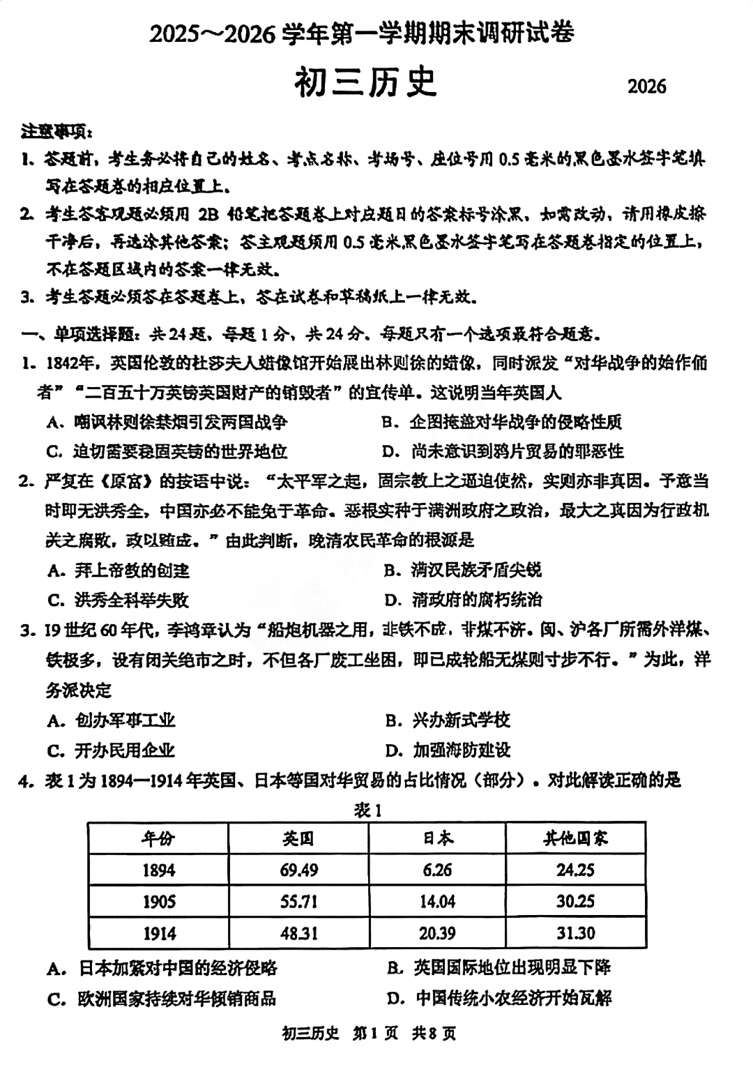 苏州初三期末统考难度评析:历史好难!数学试卷新鲜出炉!