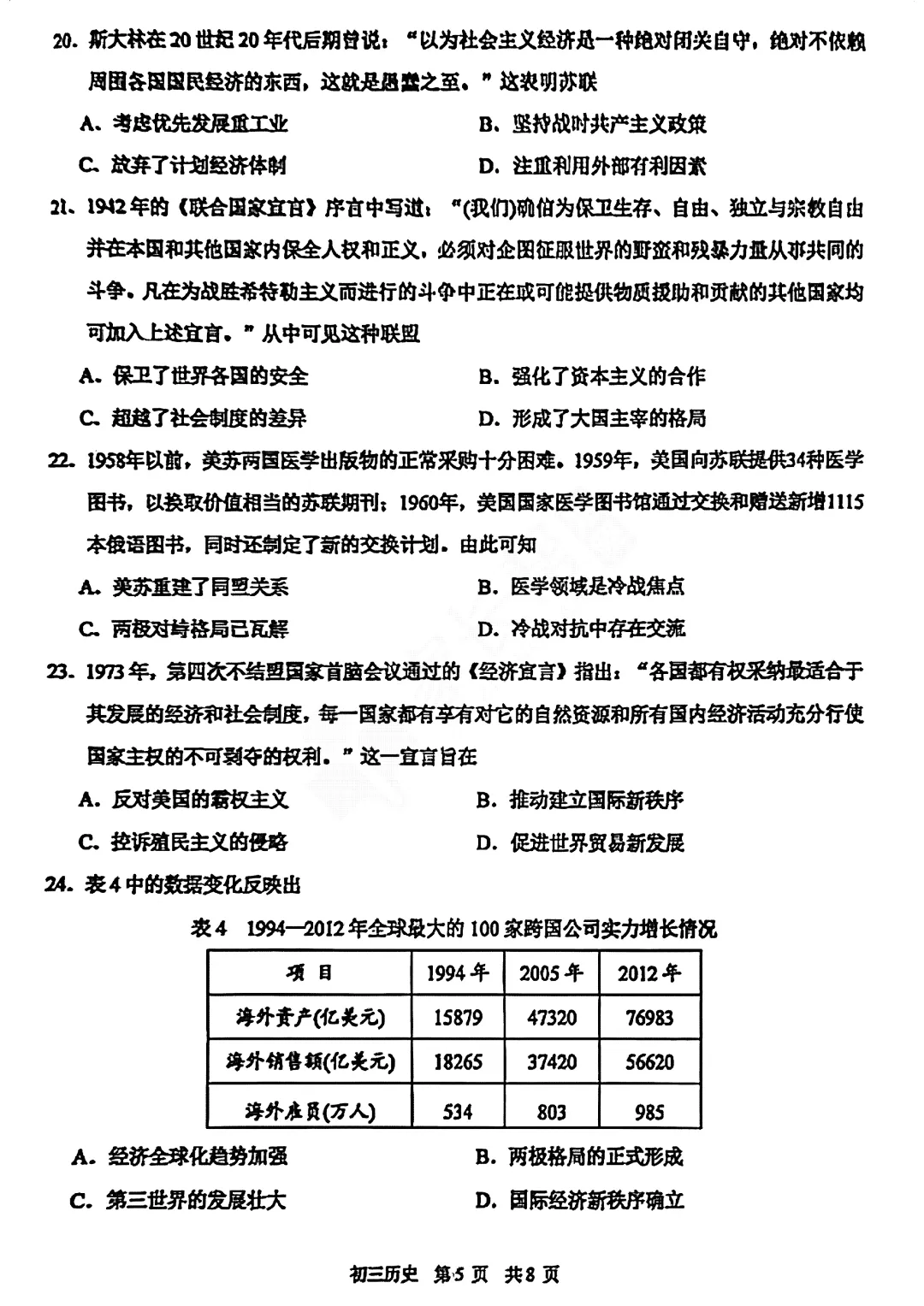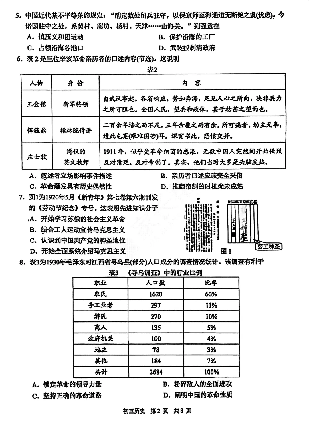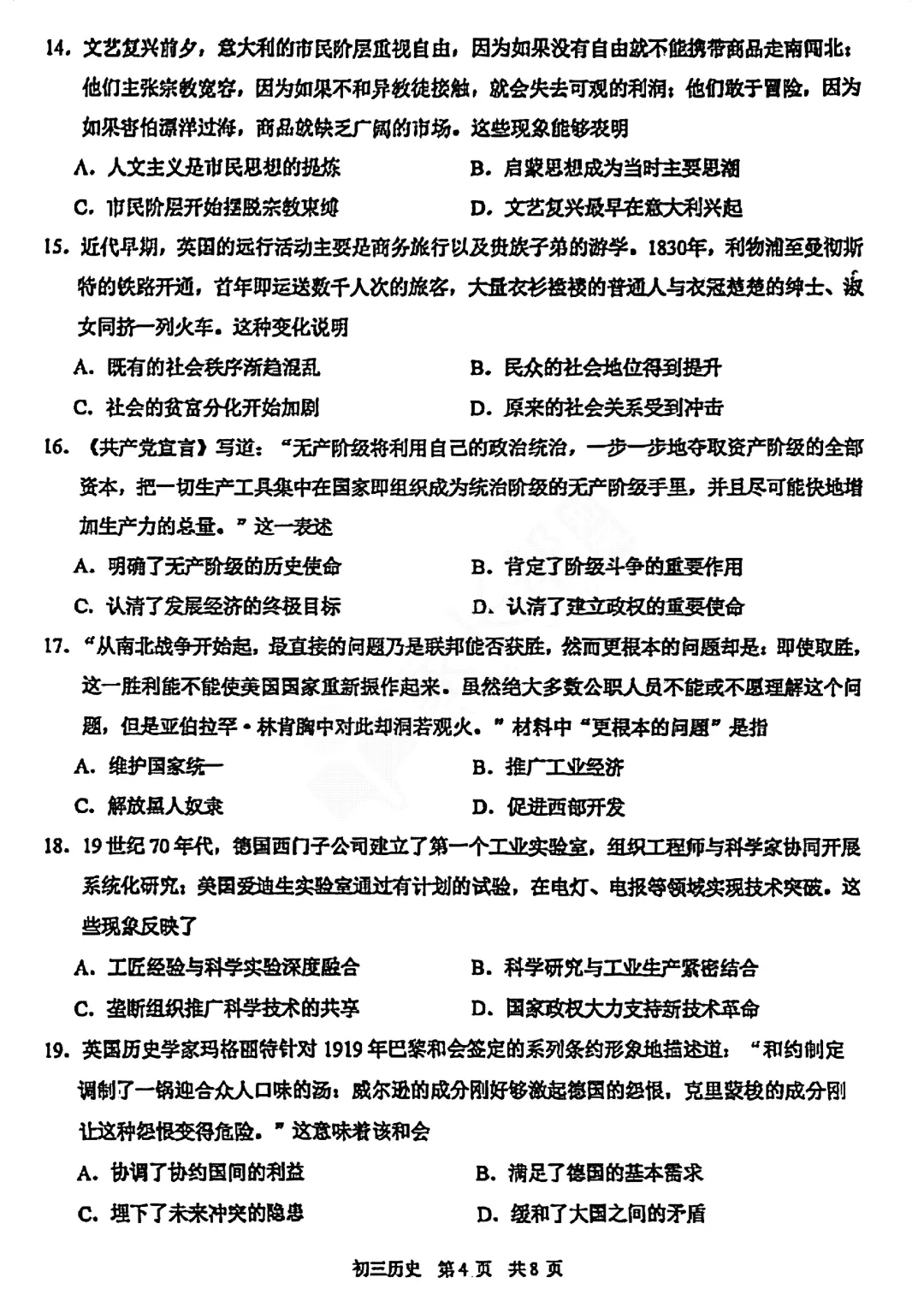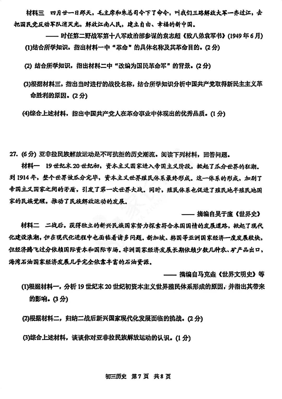 整体反馈较难。不少题目是高中题目改编的,选择题比主观题难,这次能考45+是历史非常优秀的孩子了。