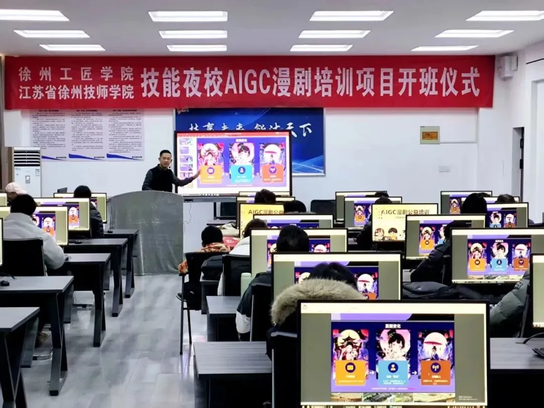 2月1日,我校开设的AIGC漫剧公益培训项目,招生信息发布后名额迅速报满,学员经培训后完成的漫剧作品已达到平台上线标准,实操效果获得一致好评。鉴于社会各界对该技能的学习需求较为集中,本次特依托徐州工匠学院“技能夜校”项目,面向社会开设AIGC漫剧创作夜校班。