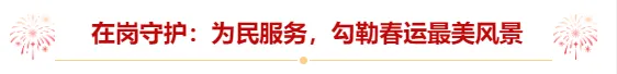 徐州乘警支队将始终坚守“人民至上、生命至上”的工作导向,以不变的坚守诠释责任,以贴心的服务传递温暖,全程护航每一位旅客的团圆之路,让春运出行更安全、更有序、更温馨。