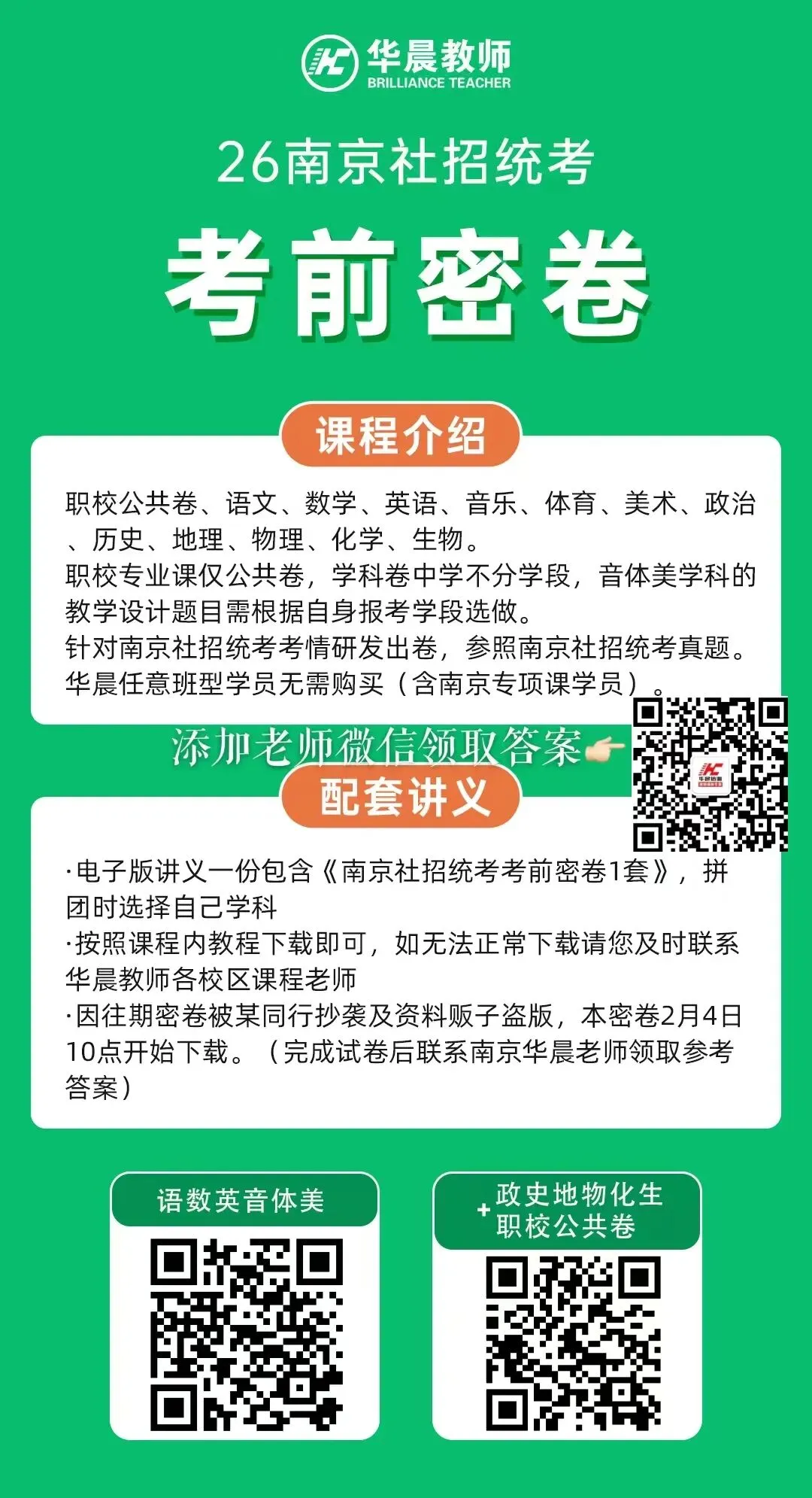 咨询南京教师编制考情,获取校招/社招备考建议,了解华晨教师培训考编课程,请加微信:13182870369