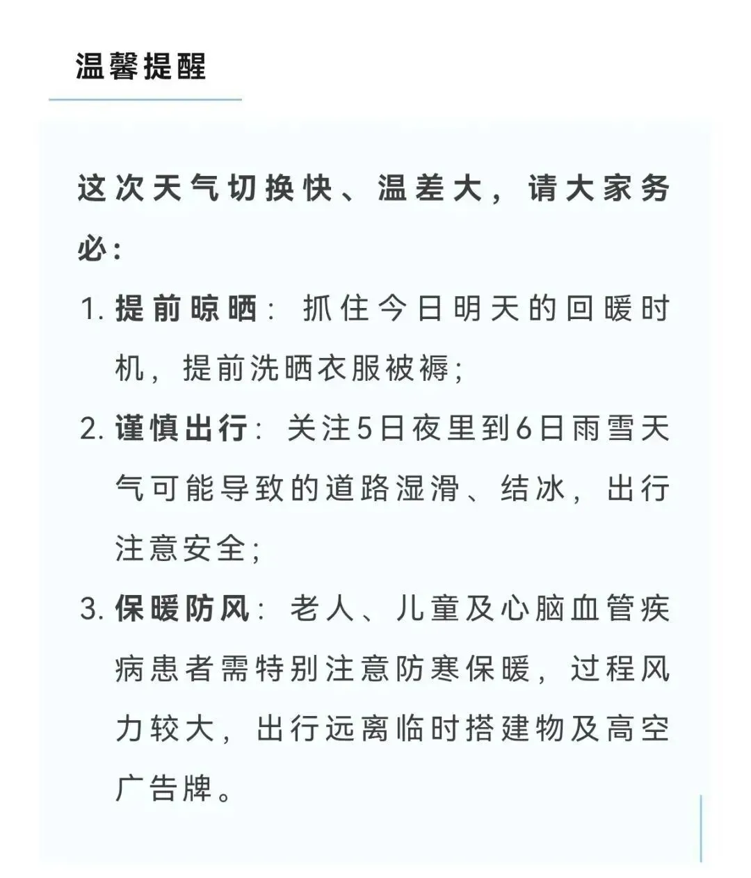 夜里雨雪渐止转多云东北风5级阵风6到7级2月6日最低气温: 0℃到-1℃2月6日白天最高气温: 4℃左右