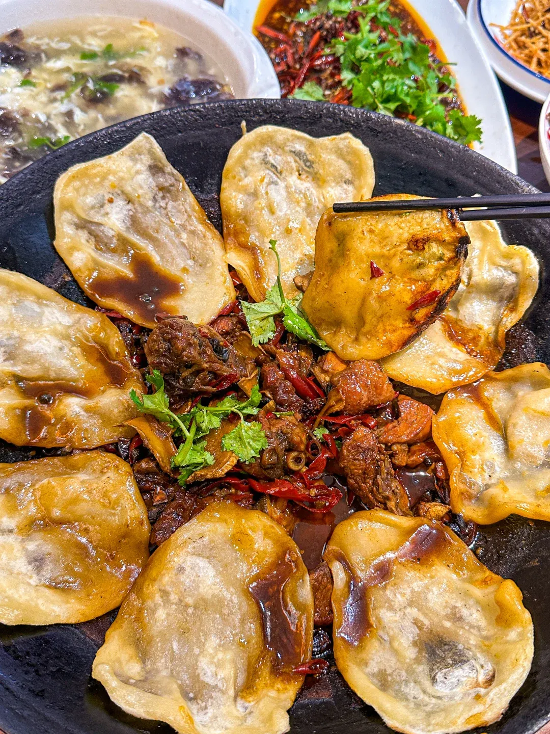 饼子特劲道,蘸满了汤汁,