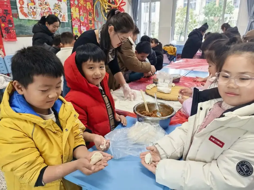 冬日的校园暖意融融,迎来了充满烟火气的包饺子活动。家长们带着馅料和工具走进教室,和孩子们一起揉面、包馅,青白相间的饺子在小手中慢慢成型,欢声笑语里,藏着家校相伴的温馨,也让这个冬天满是团圆的欢喜。