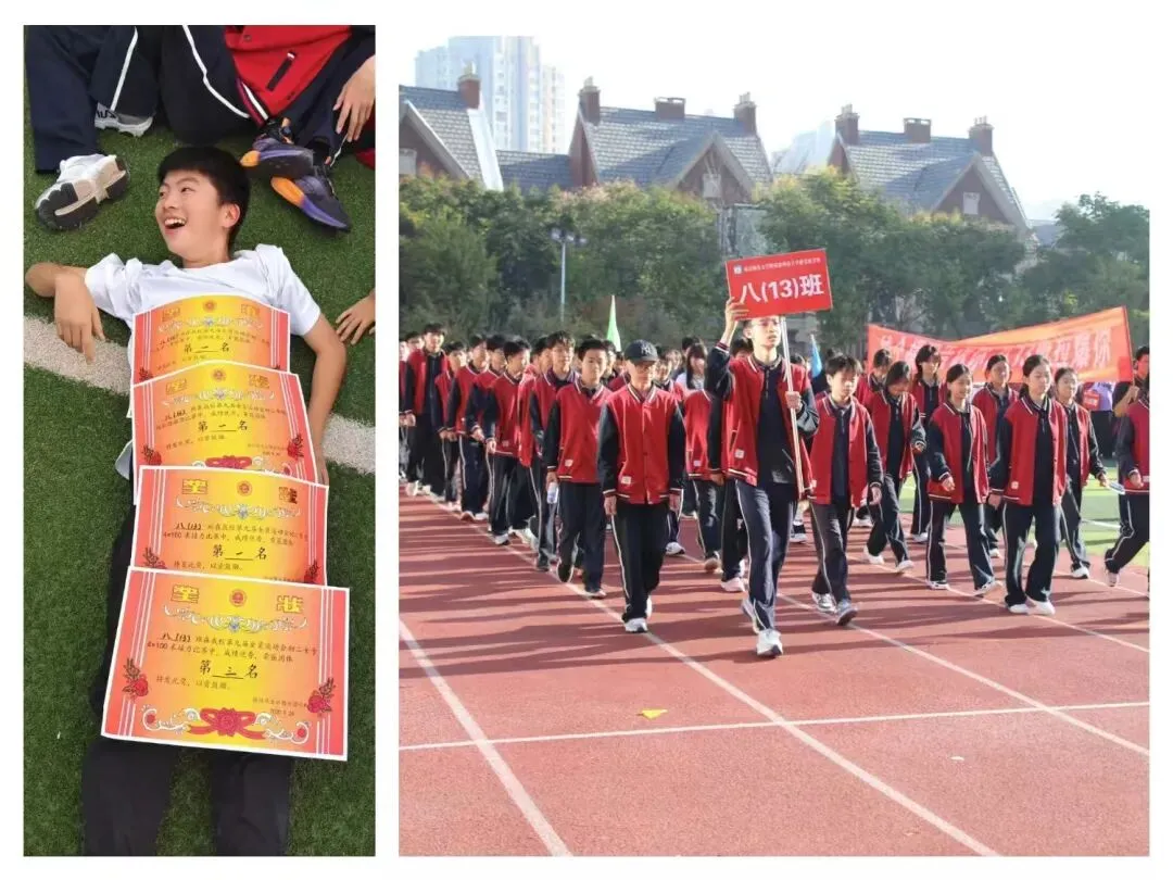 十月的校园,活力四射。在学校第九届全员运动会中,八(13)班以整齐的方阵、响亮的口号亮相开幕式,展现出蓬勃的朝气。赛场上,运动员们奋勇争先:接力赛中默契传棒,跳高场上轻盈跃起,长跑途中坚持到底。更让人动容的是,未参赛的同学自发组成后勤队与啦啦队,递水、助威、写稿,全班上下心往一处想、劲往一处使。最终,班级荣获“精神文明班级”和团体总分第二的佳绩。运动会让同学们体会到:胜利不只属于个人,更源于每一次的携手并进。